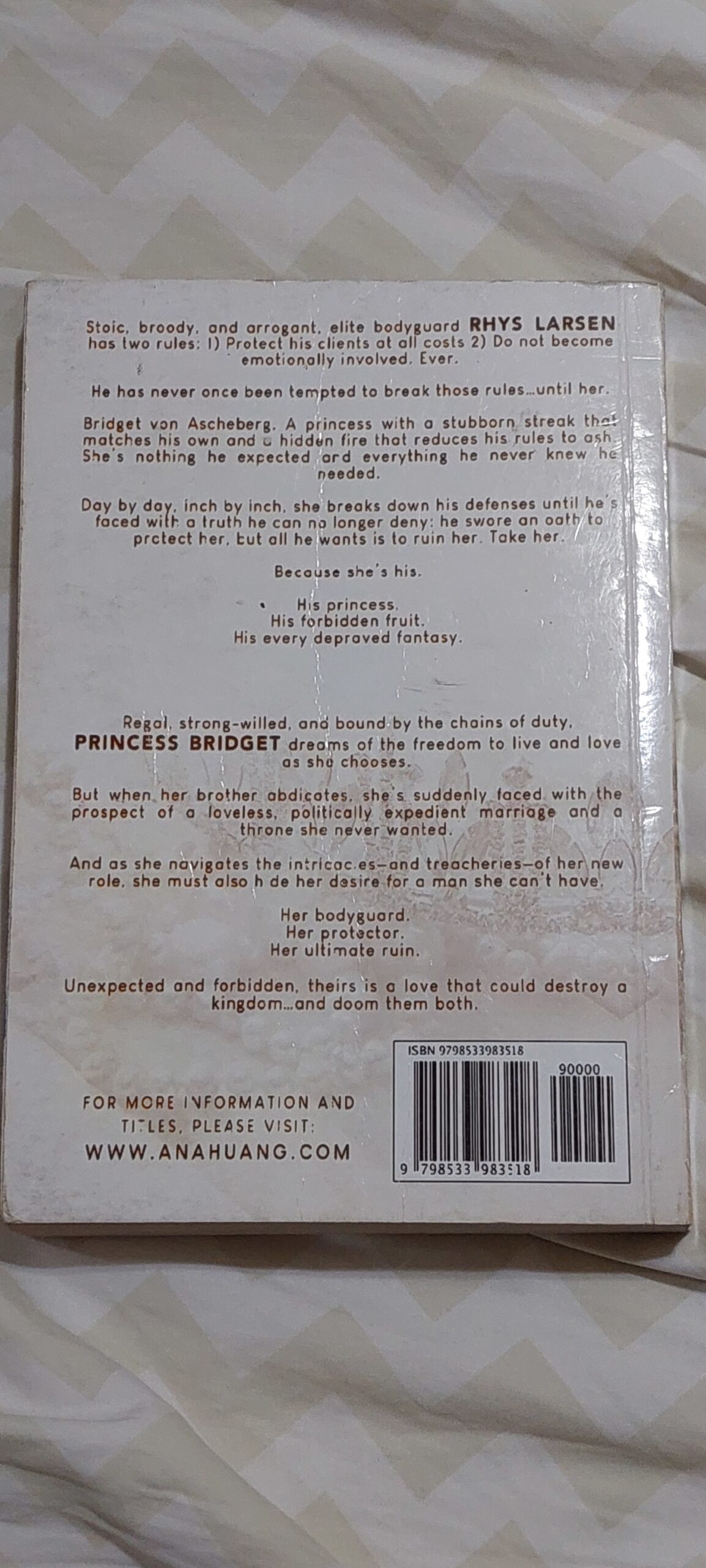 Stoic, broody, and arrogant, elite bodyguard Rhys Larsen has two 1) Protect his clients at all costs 2) Do not become emotionally involved. Ever. He has never once been tempted to break those rules . . . until he